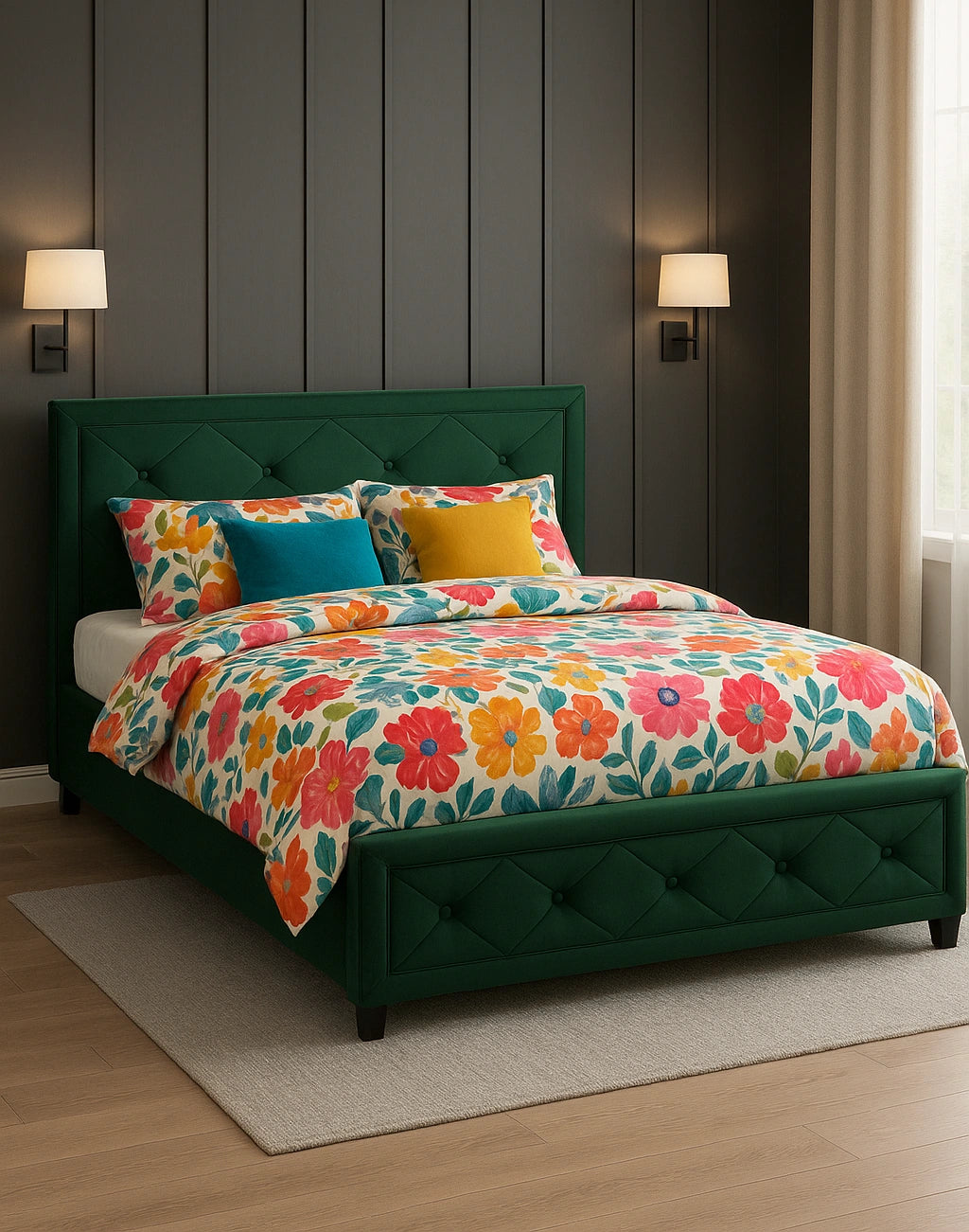 Frome Ottoman Gas Lift Bed -Velvet upholstered Grey/Jade -Storage & Sprung Slats