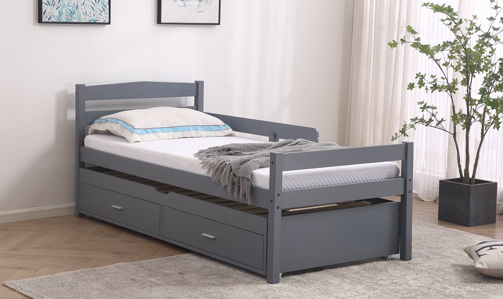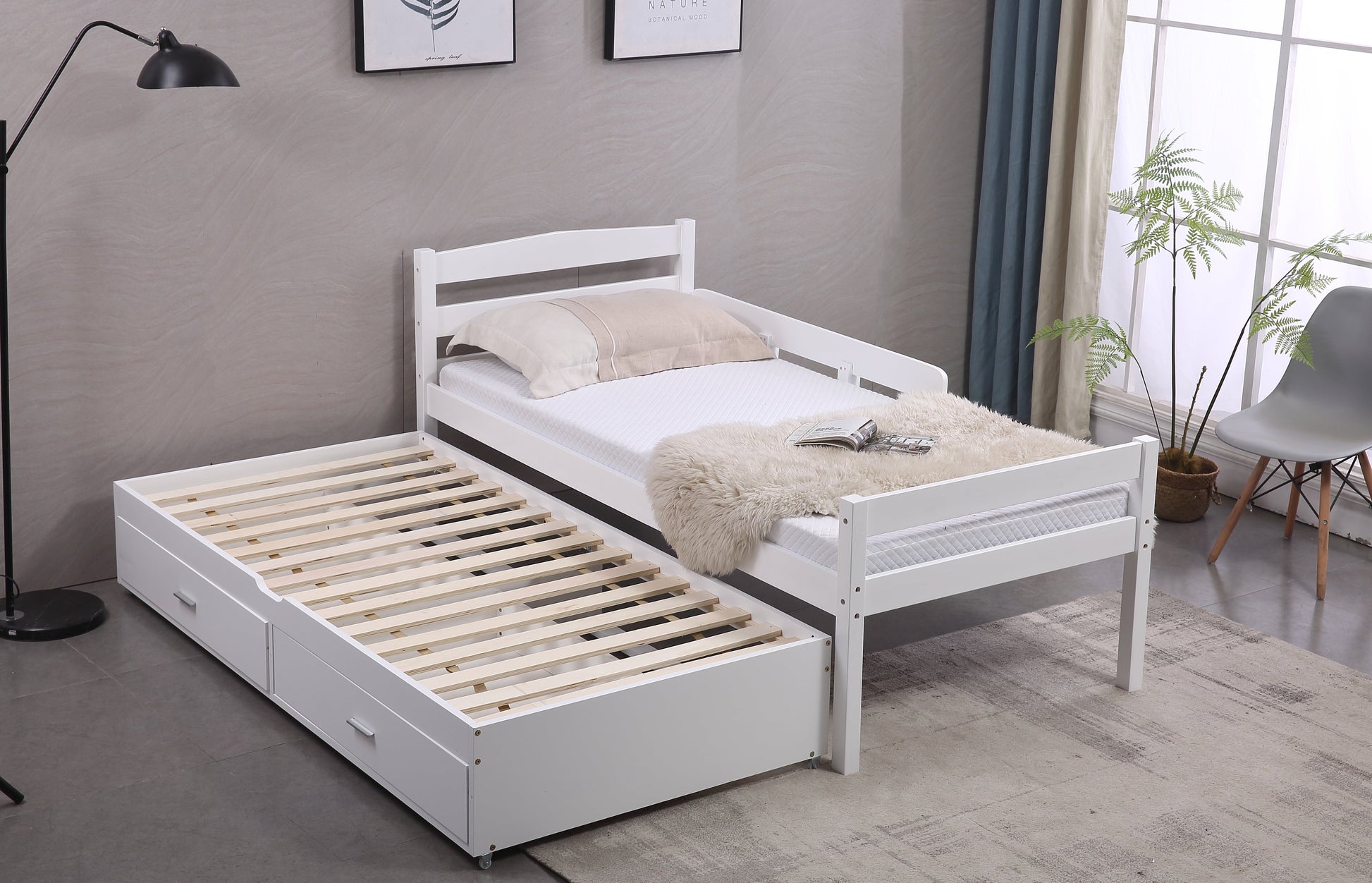 The bed arrives flat-packed in two boxes, and assembly is a breeze. Choose from a frame only or opt for the trundle mattress to make bedtime even more comfortable. Please note that the trundle is suitable for a UK standard 3FT mattress, with a recommended thickness of 8cm or less to fit comfortably under the bed.