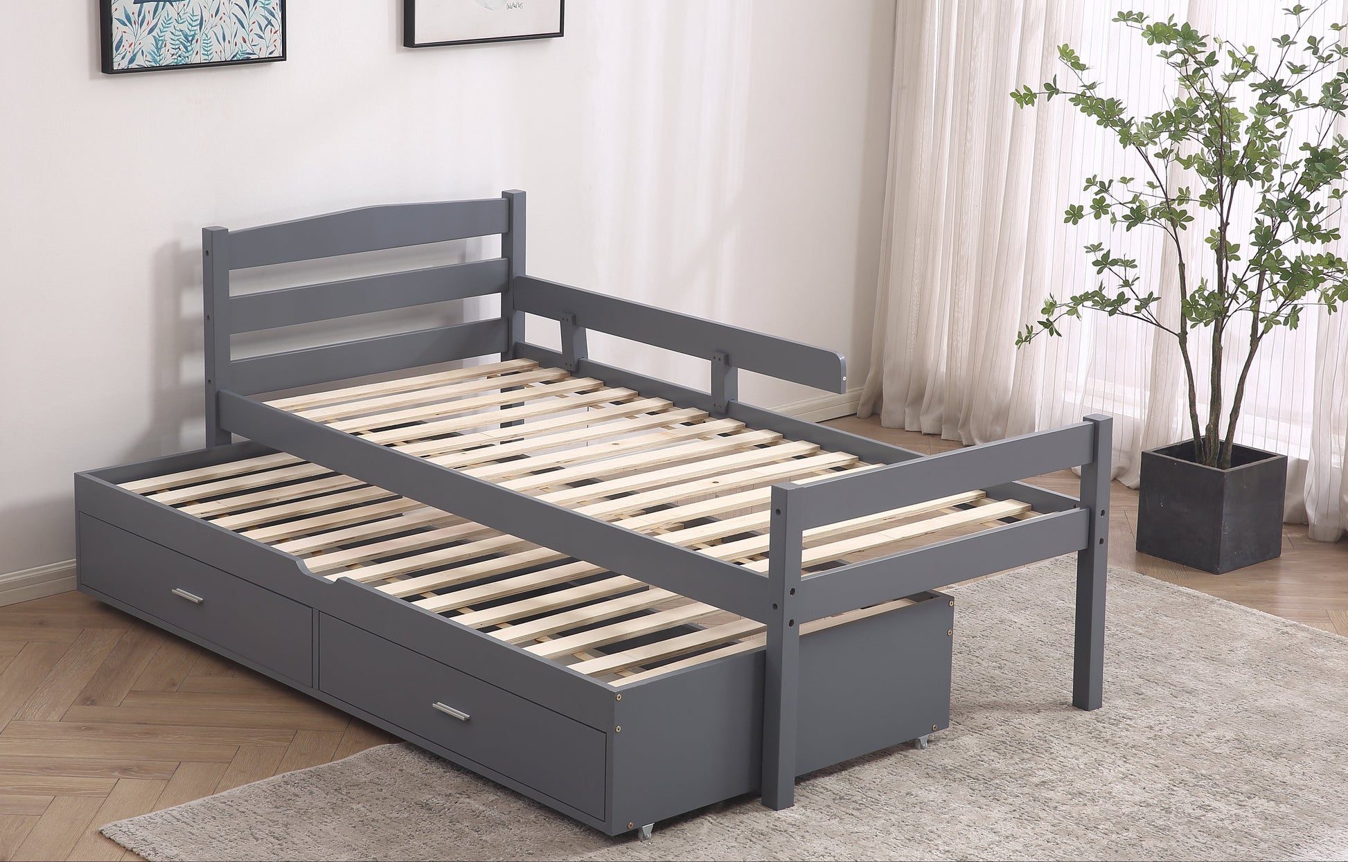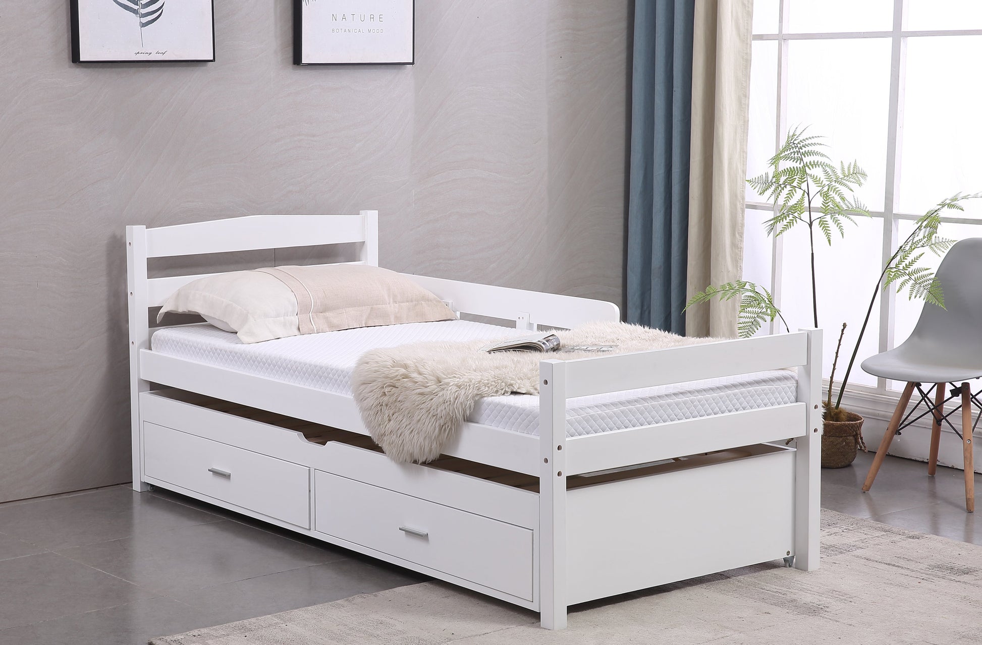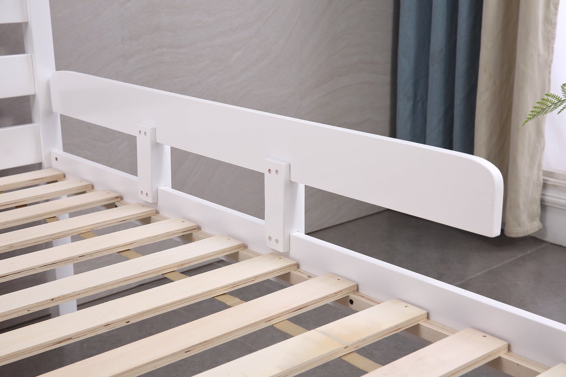 We have also included two storage drawers that fit neatly beneath the trundle, providing plenty of space to store your child's toys, books, and extra blankets. Moreover, for extra safety, our bed features a guardrail to prevent any accidental falls.