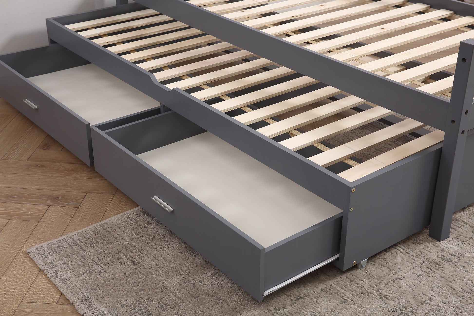 Captain Wooden Bed with Trundle, Storage Drawers and Safety Guard Rail