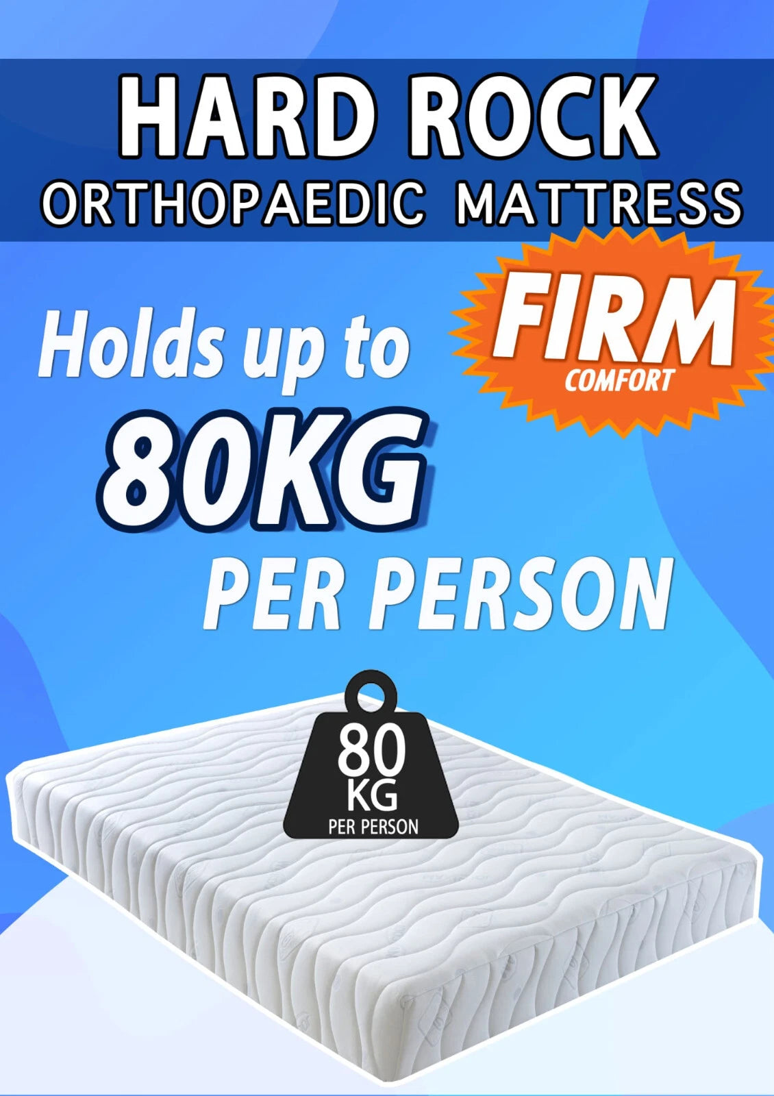 Our Brick Hard foam mattress is great value for anyone who is looking for a firm mattress and does not like the feel or warmth associated with memory foam, or the bounce that comes from springs. Reflex foam is a non-reacting foam and therefore provides great orthopedic support to the body. All materials are hypoallergenic and sanitized - perfect for allergy sufferers. Also includes anti-dust mite properties. This silent mattress is suitable for many bed types.