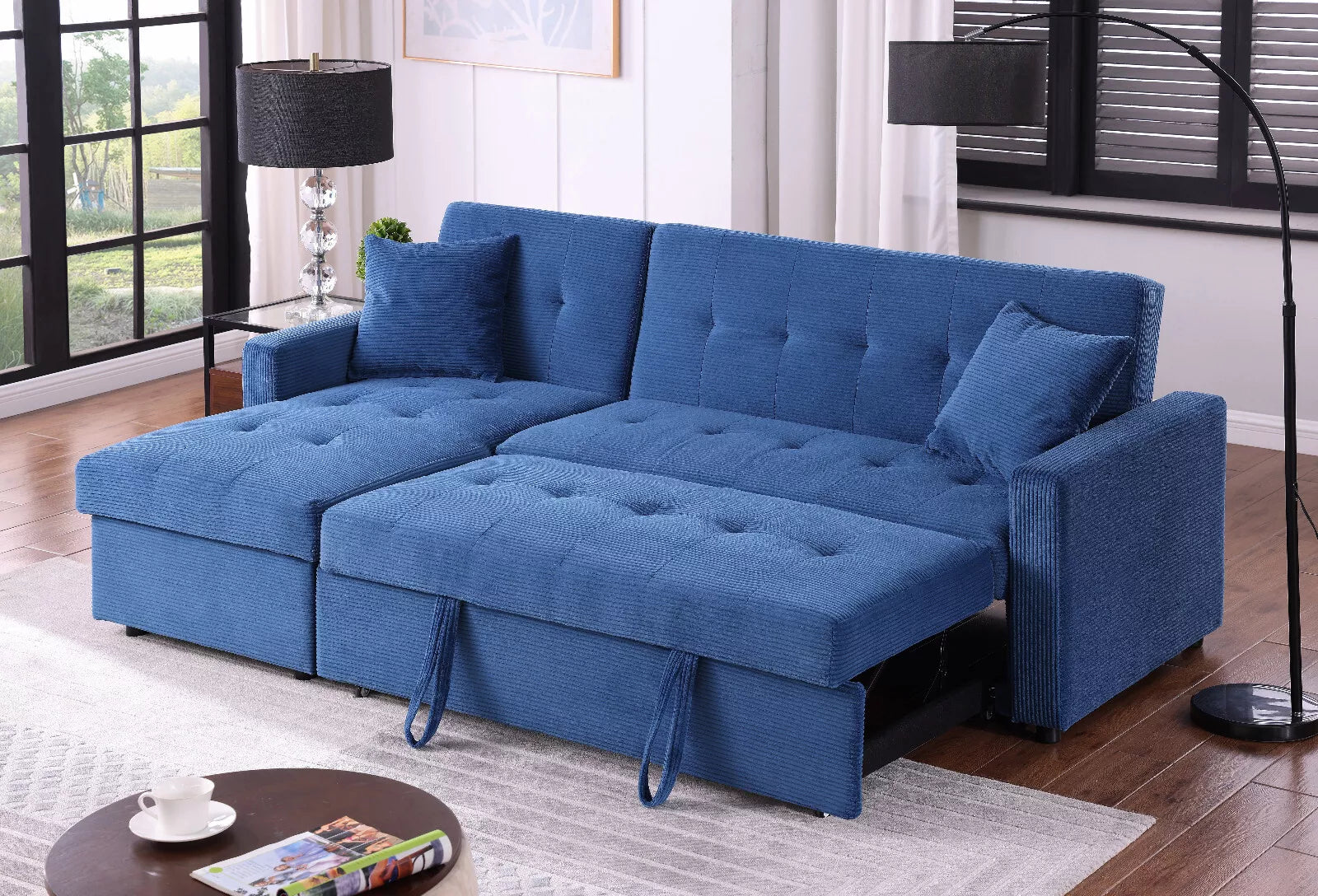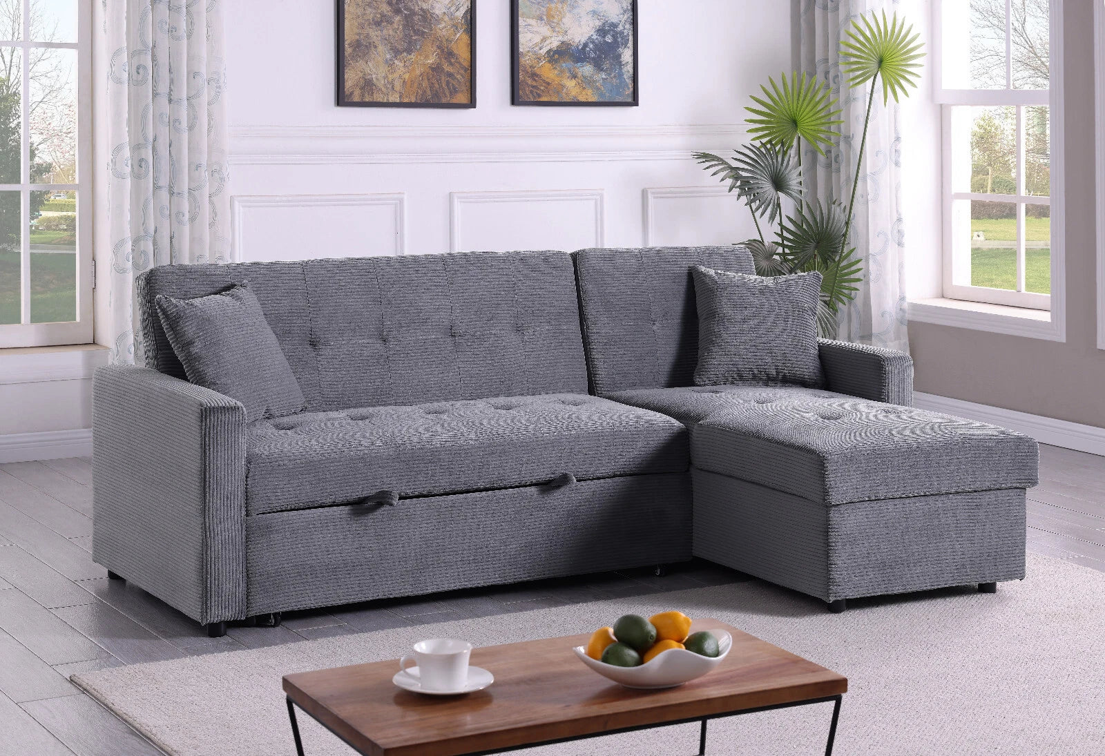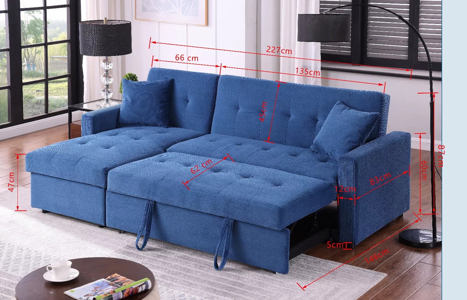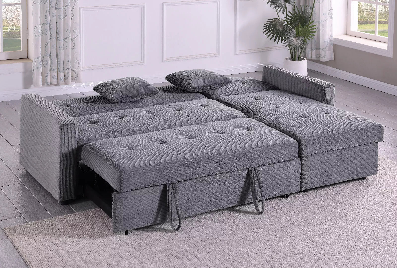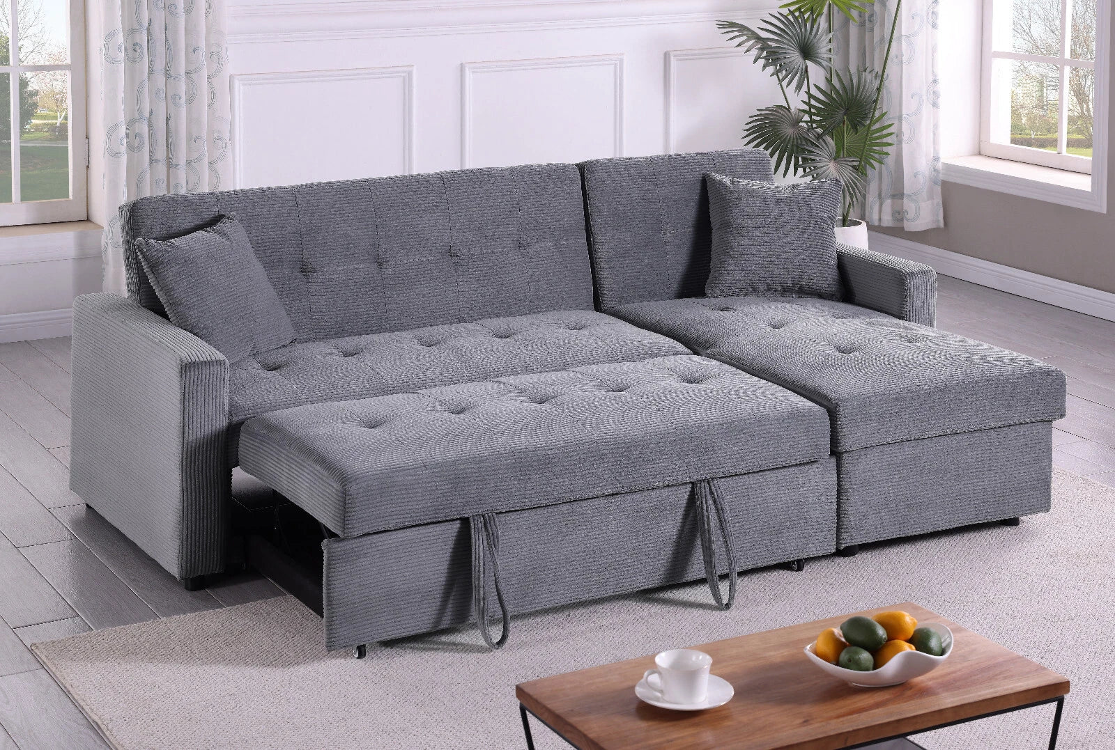 Hinton 3-Seater Corner Sofa Bed with Hidden Storage & Reversible Chaise – Grey or Blue