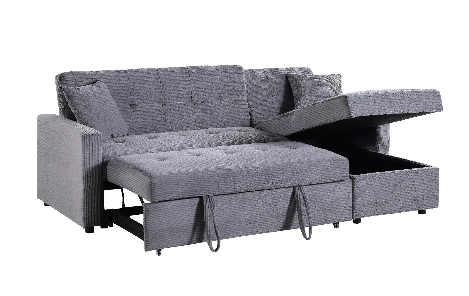 The reversible chaise allows you to place it on the left or right side, making it effortlessly adaptable to any room layout. Hidden beneath the chaise is a generous storage compartment, ideal for keeping blankets, cushions or bedding neatly tucked away.