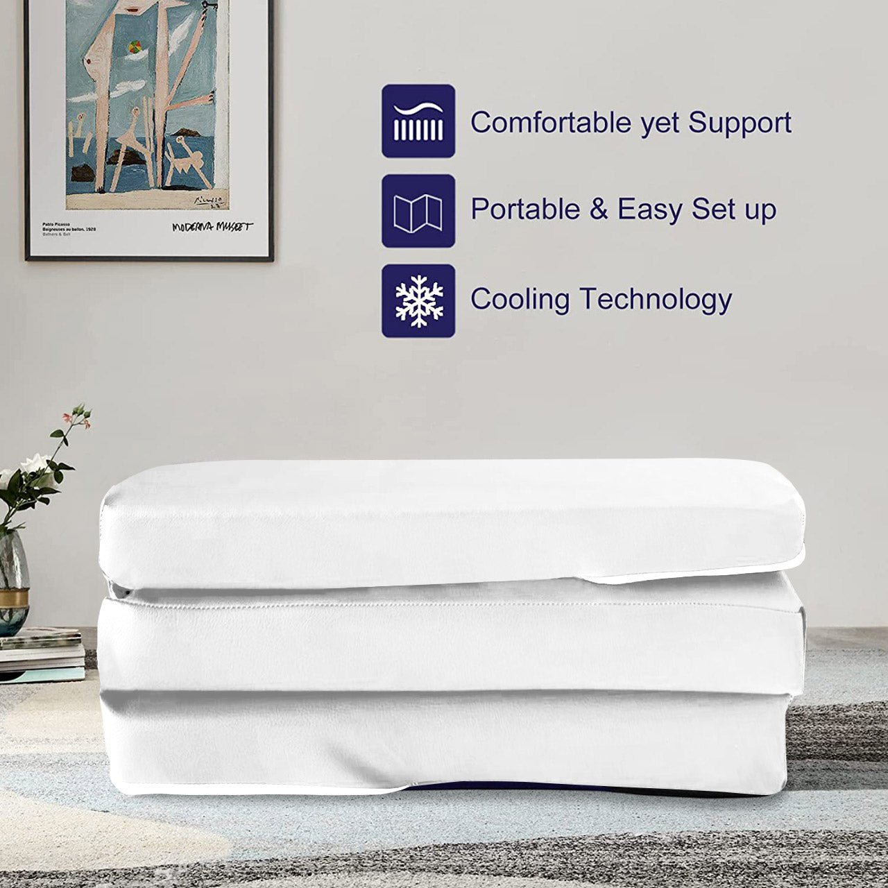 - IDEAL FOR KIDS SLEEP-OVERS OR UNEXPECTED GUESTS The folding mattress pad offers a quick solution for guests, sleepovers or when you're the road. It is space-saving when folded up and ideal for camping or traveling. children is lightweight and easy to carry. MEDIUM HARD FOAM CORE Weight: 270g (5.9 lbs). The spare guest z-bed has air fibre foam padding that provides good support, thus ensuring restful sleep. This medium hard mattress has a good air and moisture exchange.