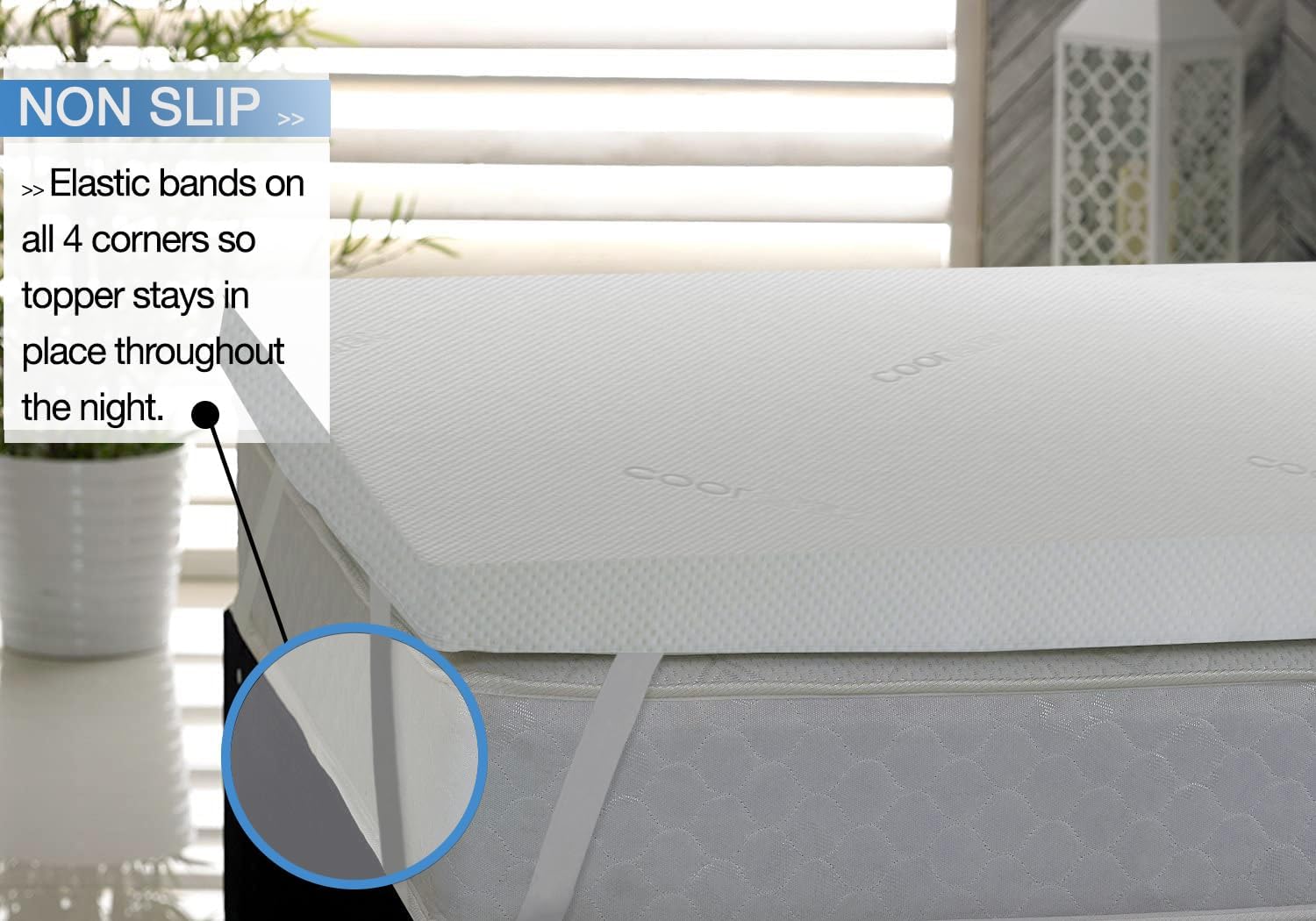 - NON-SLIP: The topper makes use of four corner elastic bands to hook around your mattress, this will help keep the mattress topper from sliding around during the night. It is available in multiple sizes including, 3FT Single (90x190), 4FT Small Double (120x190), 4FT6 Double (135x190), 5FT King (150x200) and 6FT Super King (180x200).