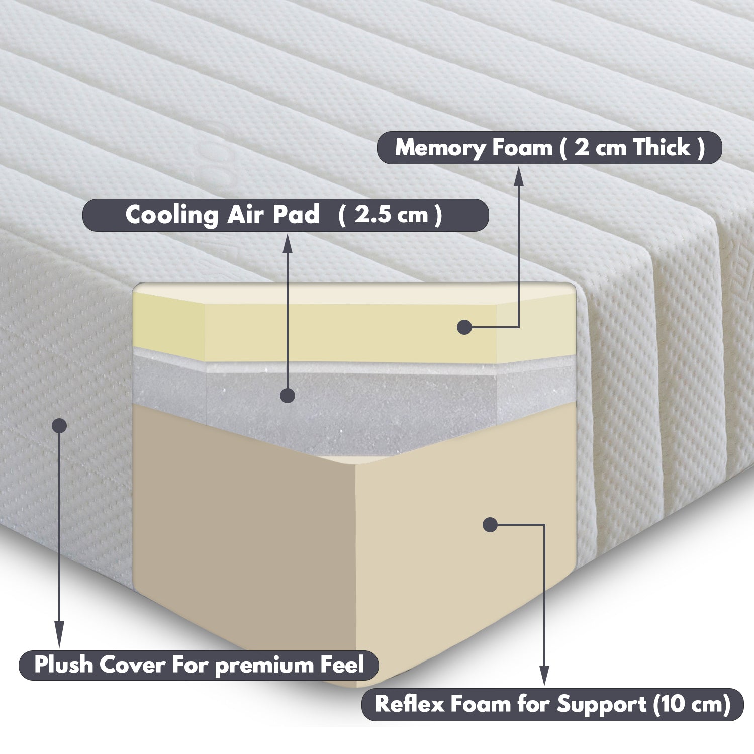 - The mattress has a supportive base made of Visco Polyurethane Foam. This foam base of 15cm gives the mattress a firm comfort rating which provides a level surface to support your spine and prevents your back from curving.
