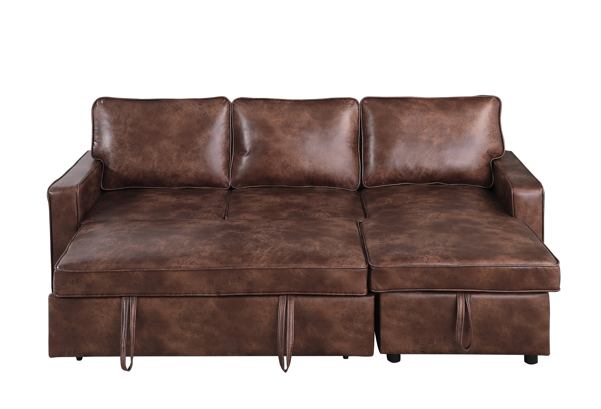 Moxy 3-Seater L-Shaped Sectional Sofa Bed with Pull-Out Sleeper & Reversible Storage Chaise – Premium Faux Leather Corner Couch for Small Spaces (Rich Brown & Charcoal Black)