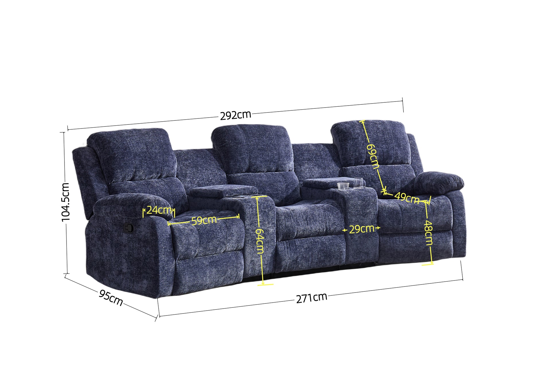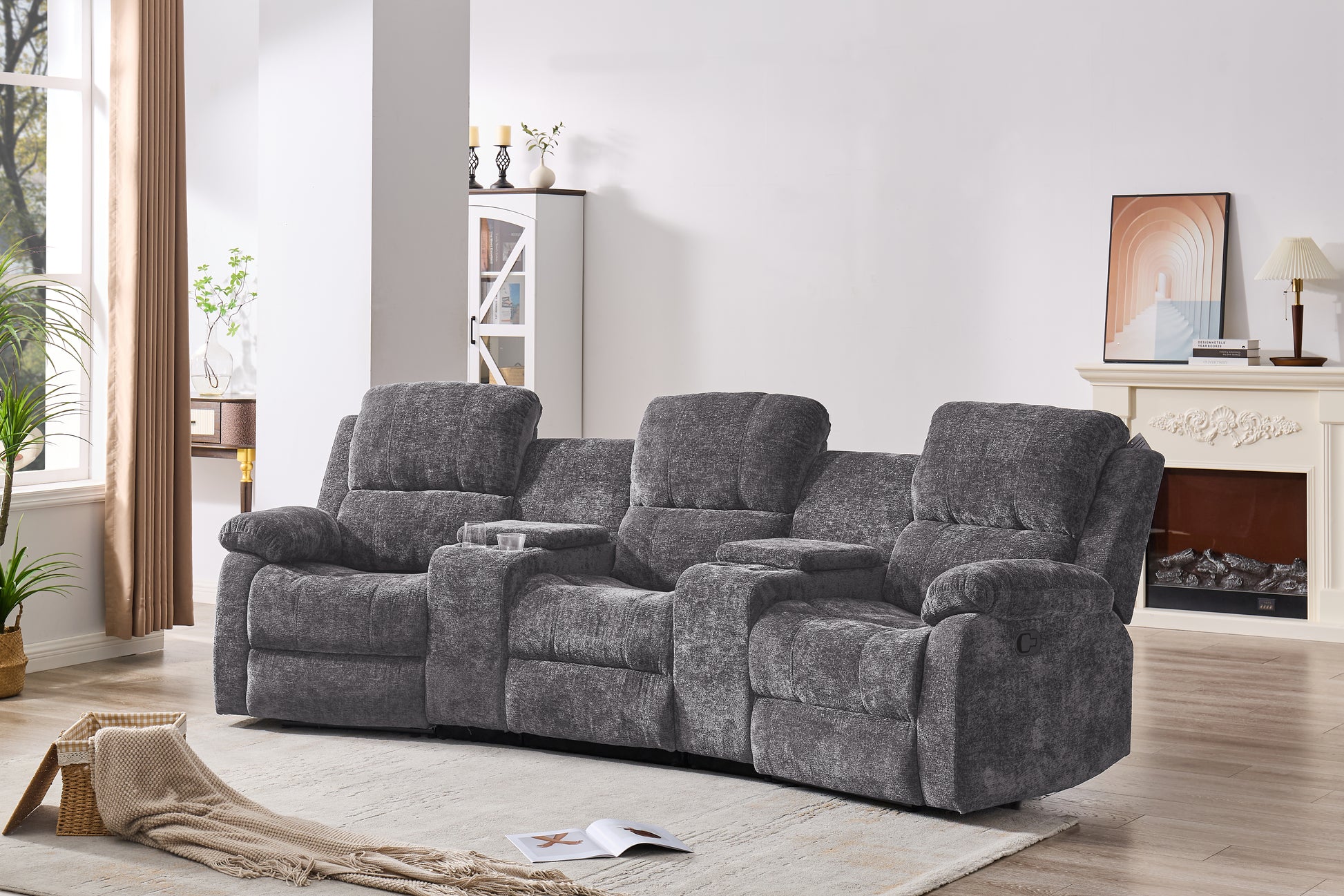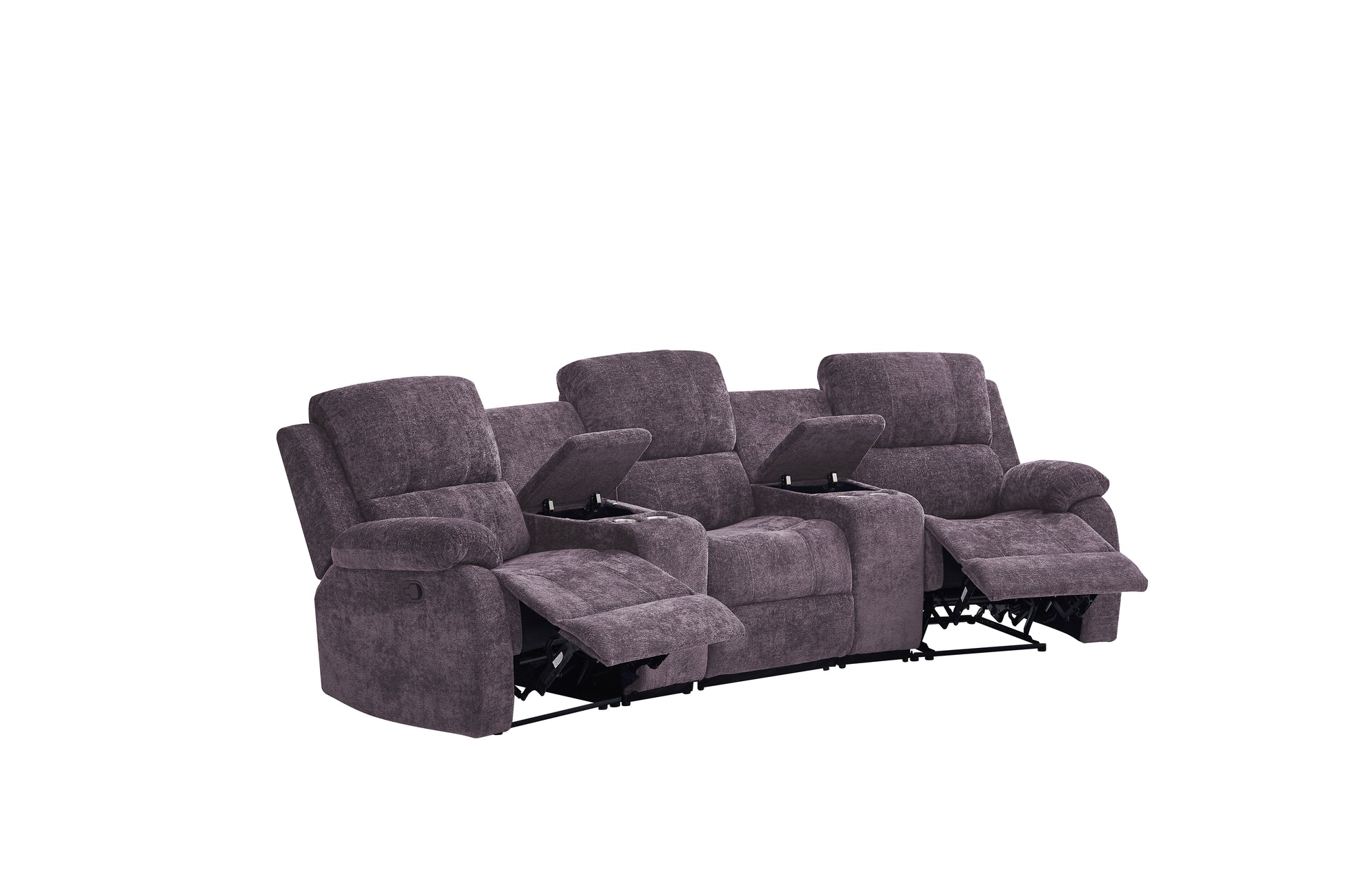 Nova 3-Seater Recliner Sofa – Manual Recliners with USB Ports, Cupholders & Hidden Storage | Chenille Comfort