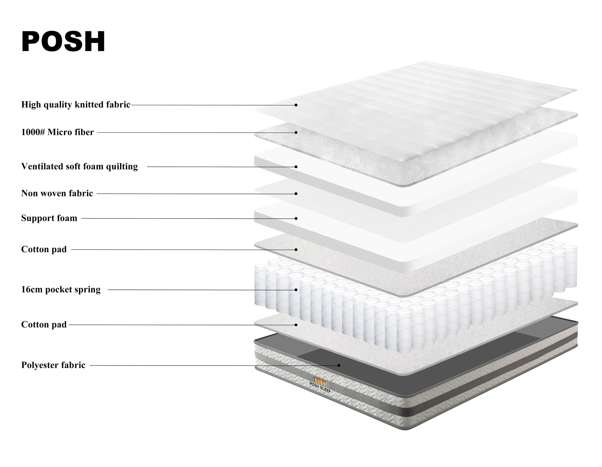 POSH Pocket Spring Mattress – 20cm - Breathable Support for Everyday Comfort