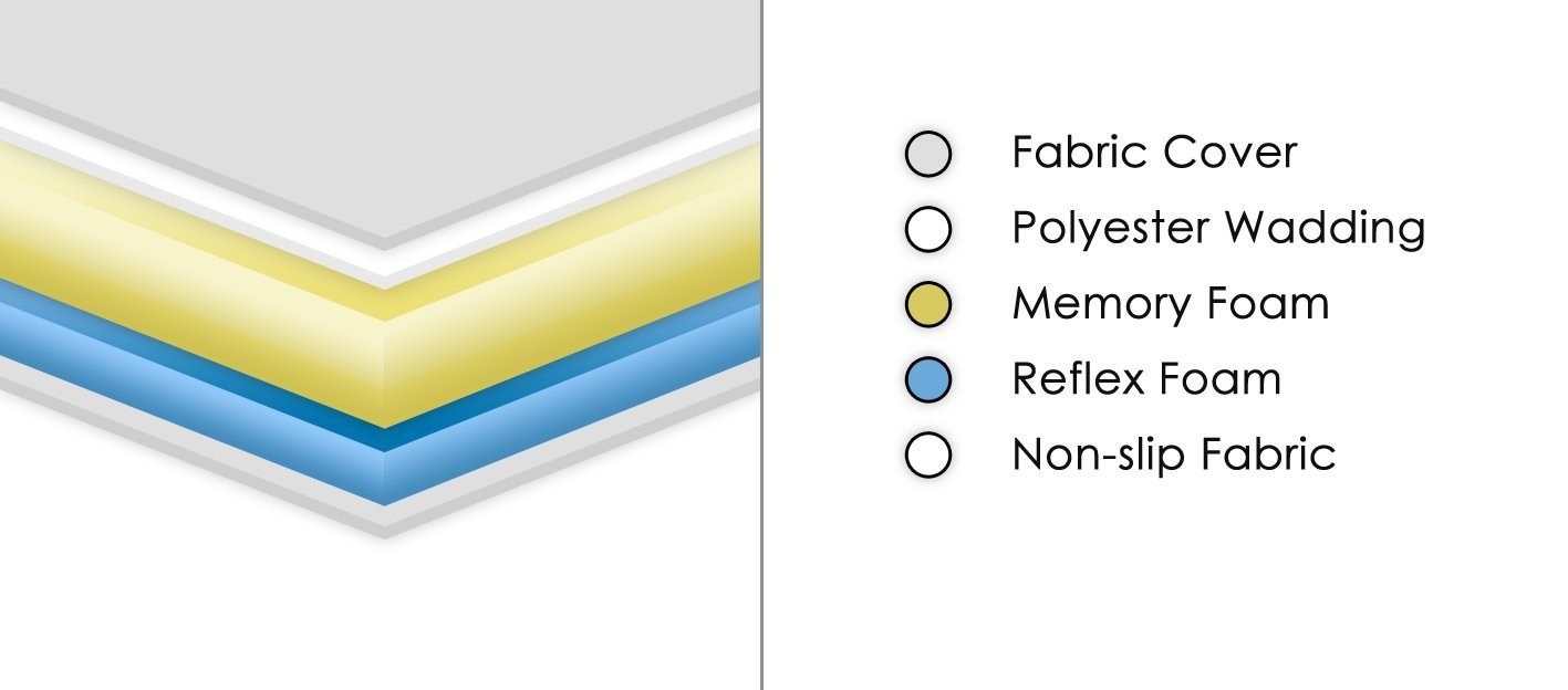 3cm Memory Foam, 13cm Reflex Foam, Single Sided Mattress - No Turn, 5 Zone Support |